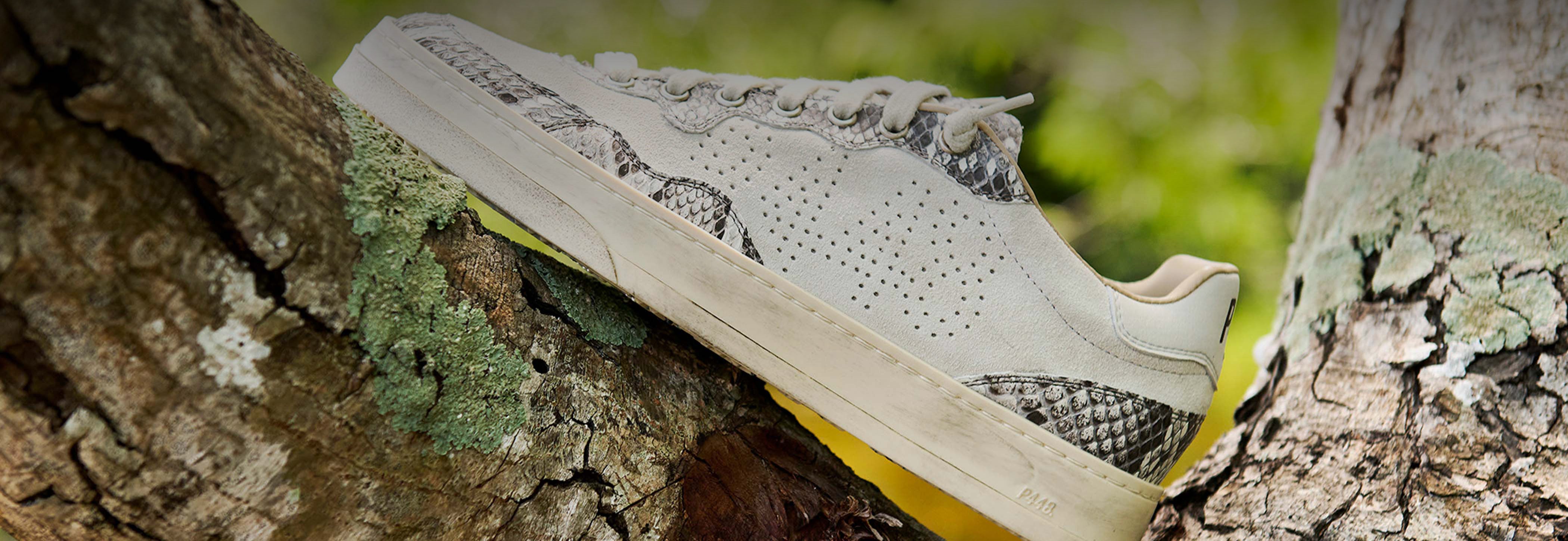 The first-to-market line of sneakers with accent leathers crafted from repurposed invasive species, including lionfish, carp and Burmese pythons.