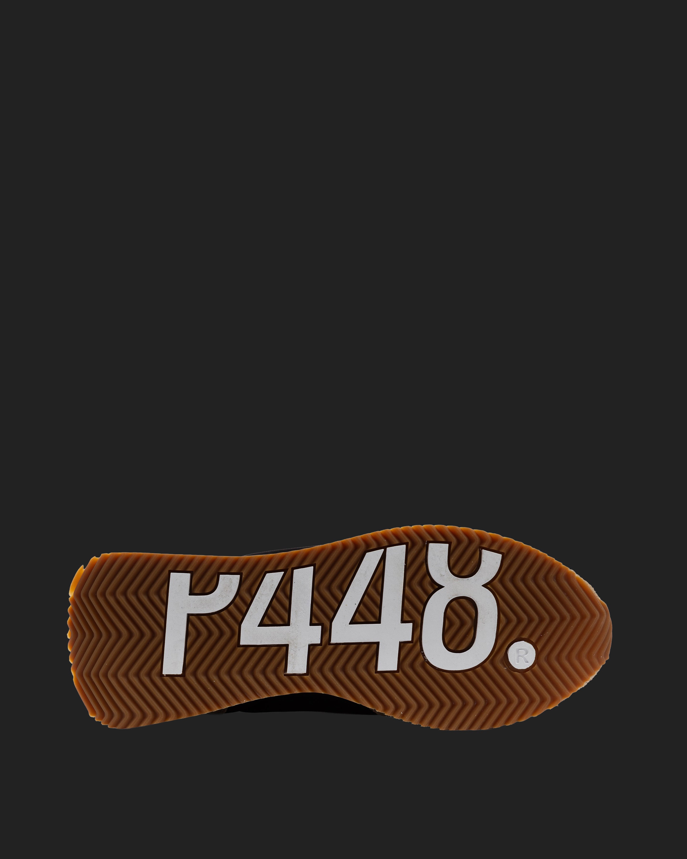 We recommend using a lightly damp cotton or microfiber cloth to gently brush dirt away. Ensure shoes are completely dry before wearing again and are not dried in direct sunlight or high heat sources to avoid cracking the leather. Condition the leather once a month to protect against damage so you can wear P448 for years to come.