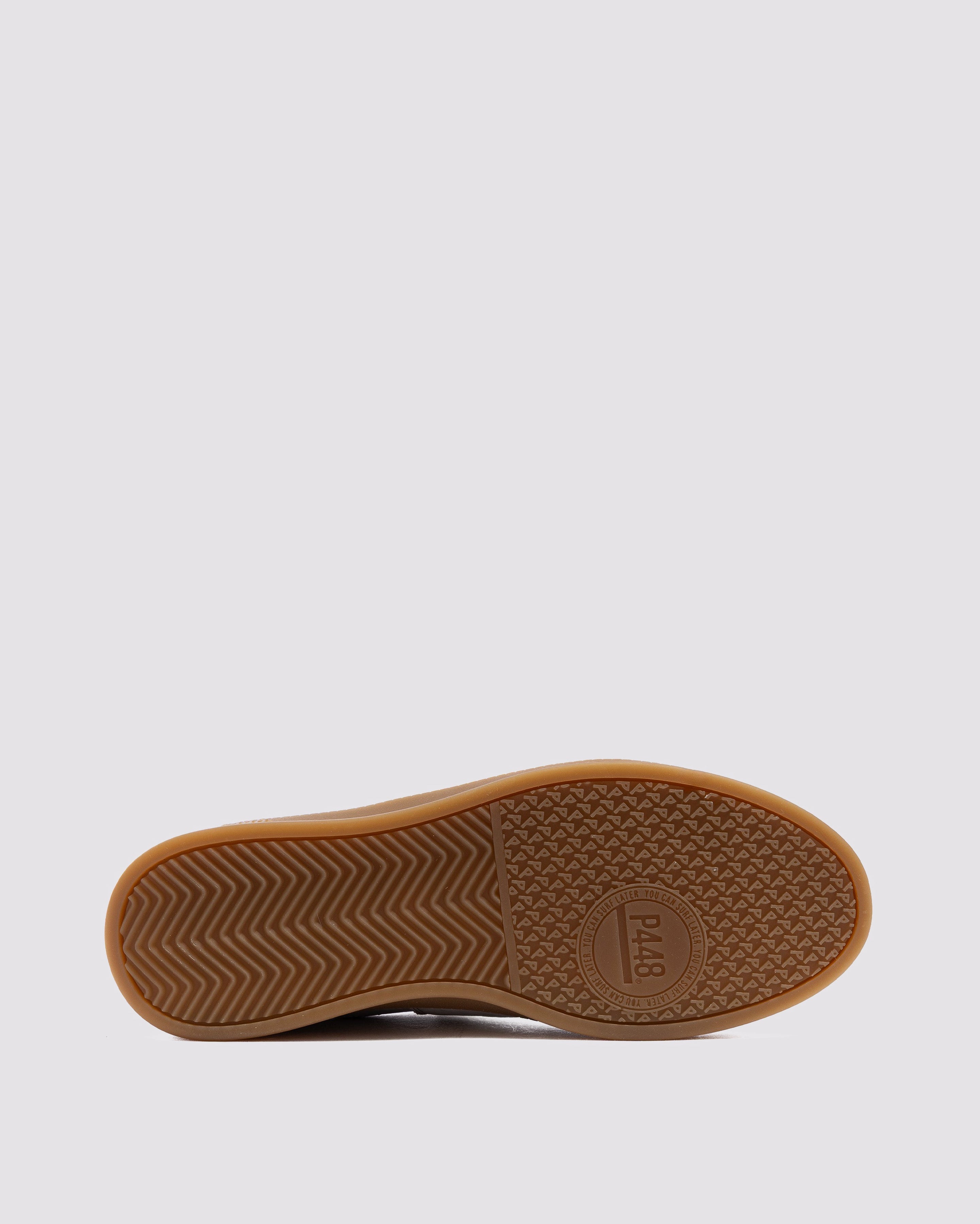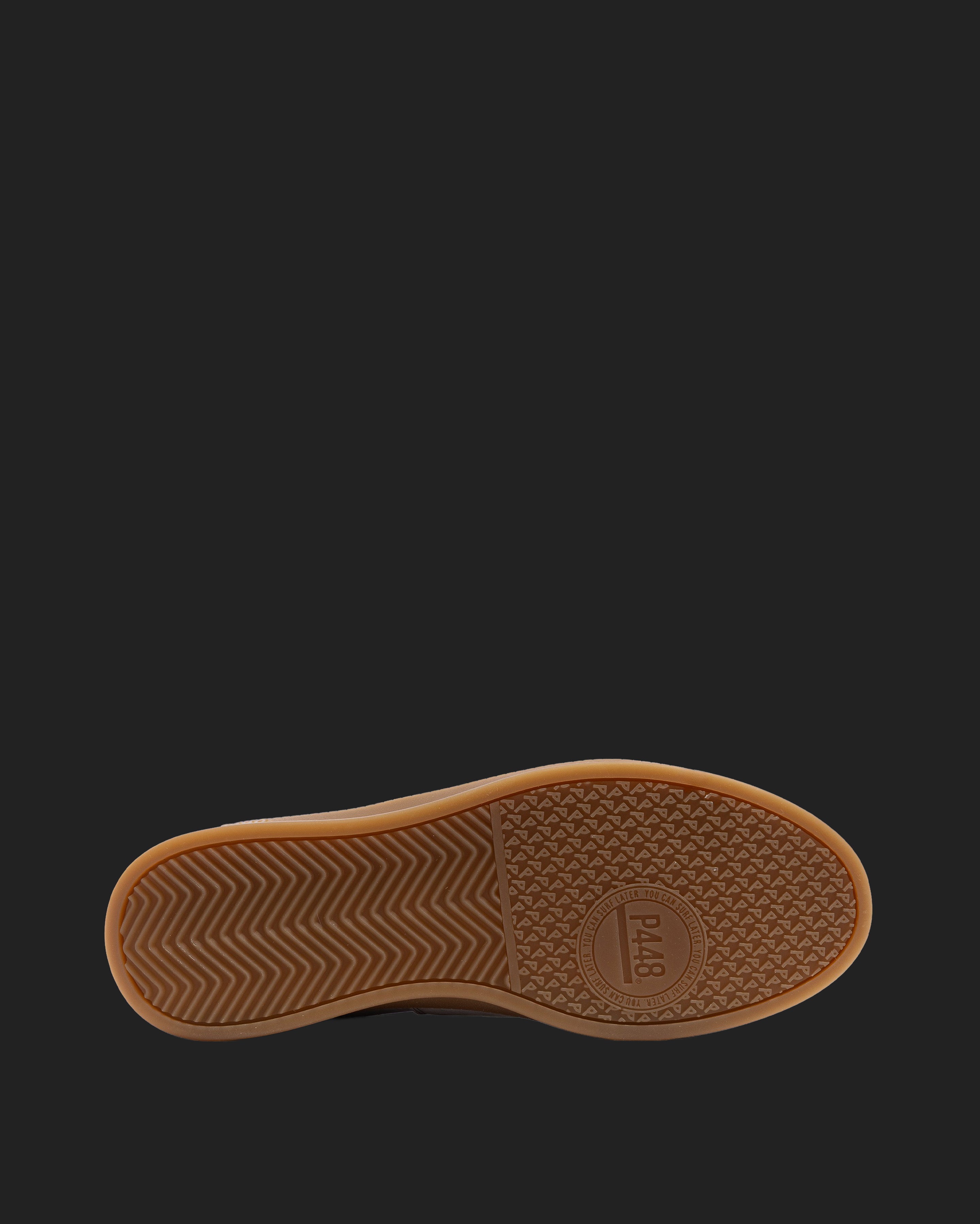 We recommend using a lightly damp cotton or microfiber cloth to gently brush dirt away. Ensure shoes are completely dry before wearing again and are not dried in direct sunlight or high heat sources to avoid cracking the leather. Condition the leather once a month to protect against damage so you can wear P448 for years to come.