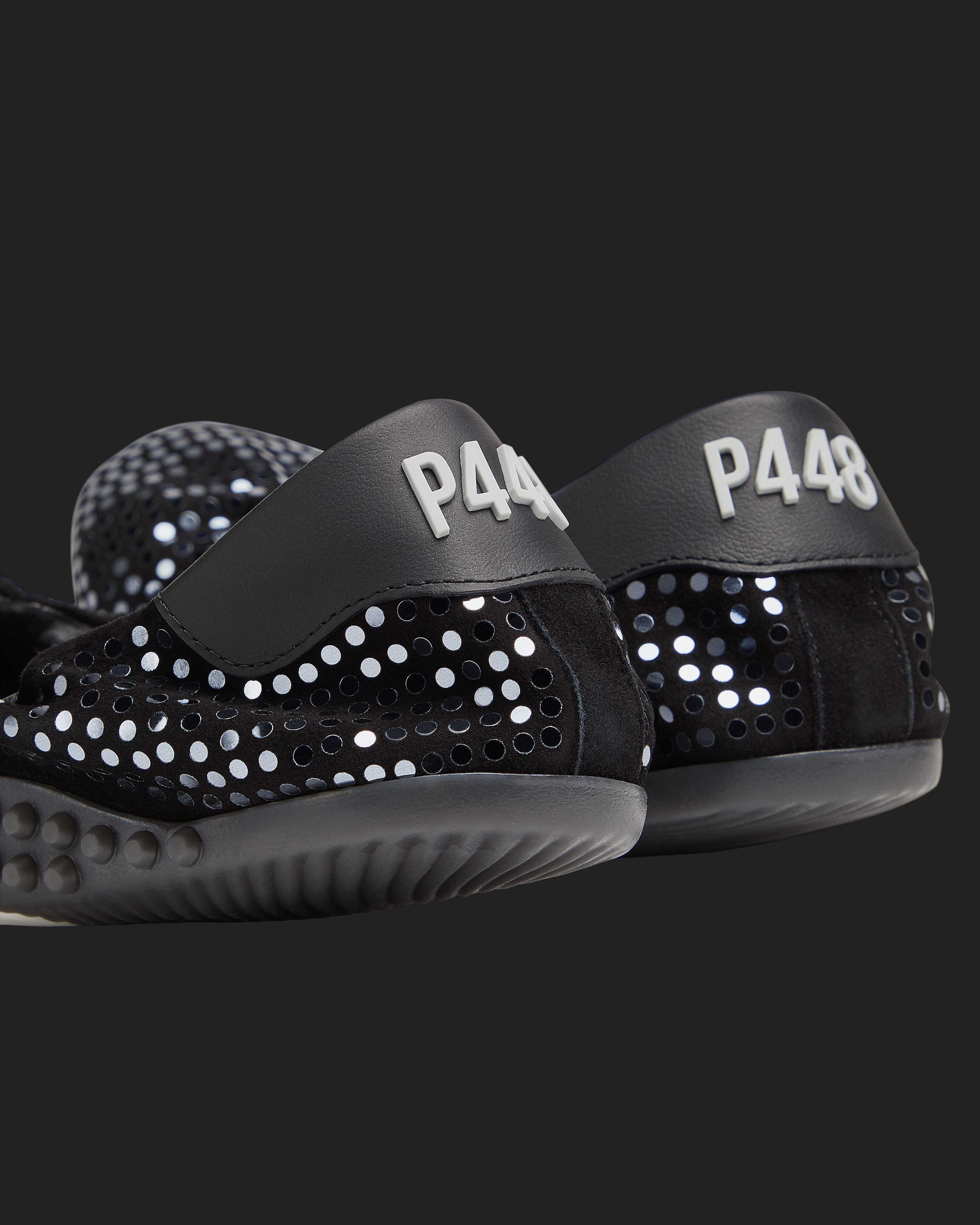 Our P448 designs push the boundaries of footwear by choosing unique specialty materials, some of which require particular care. This includes haircalf, glitter, denim, sponge, and others. These materials are often delicate and difficult to clean. Try to avoid wet or muddy areas when wearing and bring to a cleaning expert when dirty or stained.