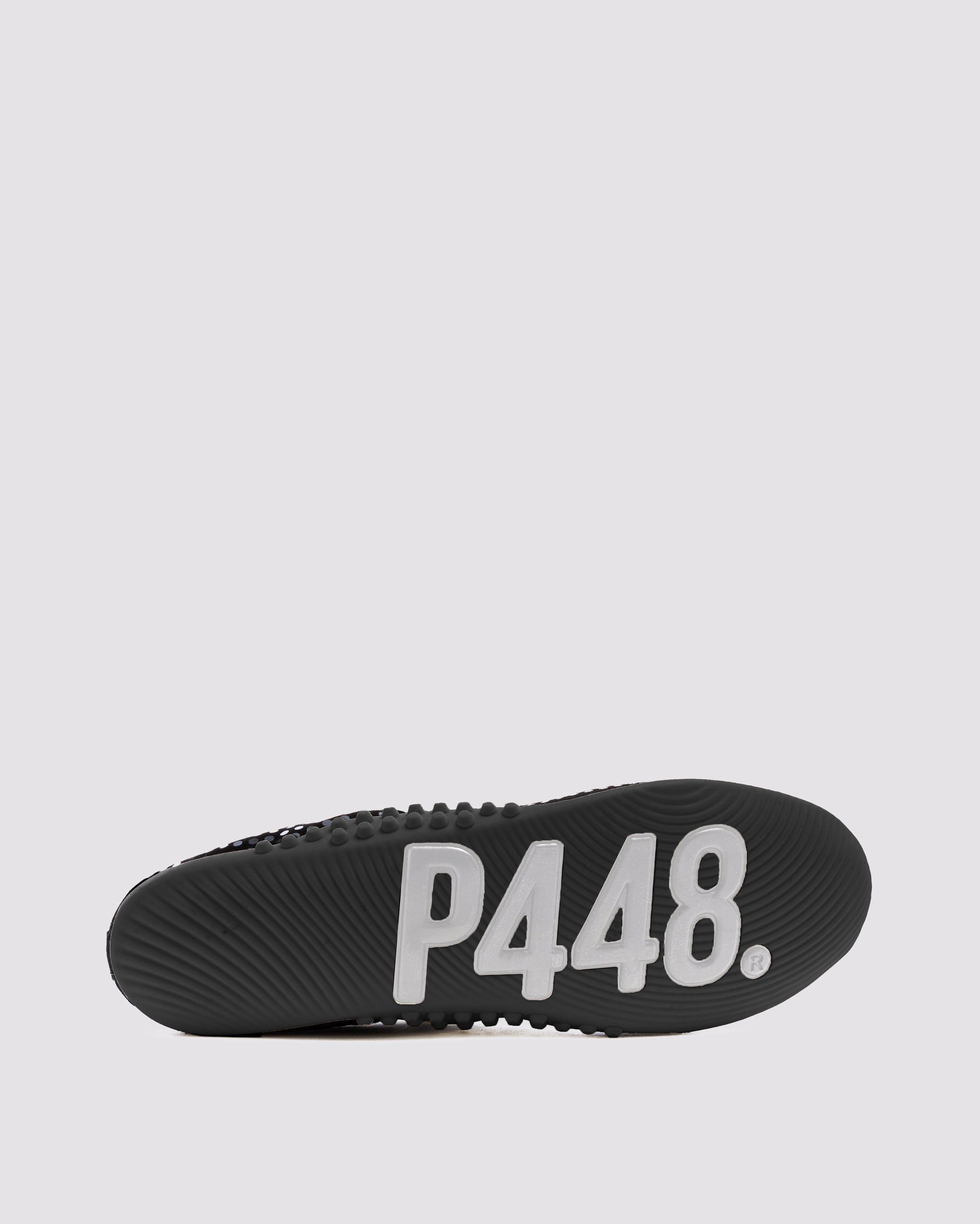 We recommend using a lightly damp cotton or microfiber cloth to gently brush dirt away. Ensure shoes are completely dry before wearing again and are not dried in direct sunlight or high heat sources to avoid cracking the leather. Condition the leather once a month to protect against damage so you can wear P448 for years to come.