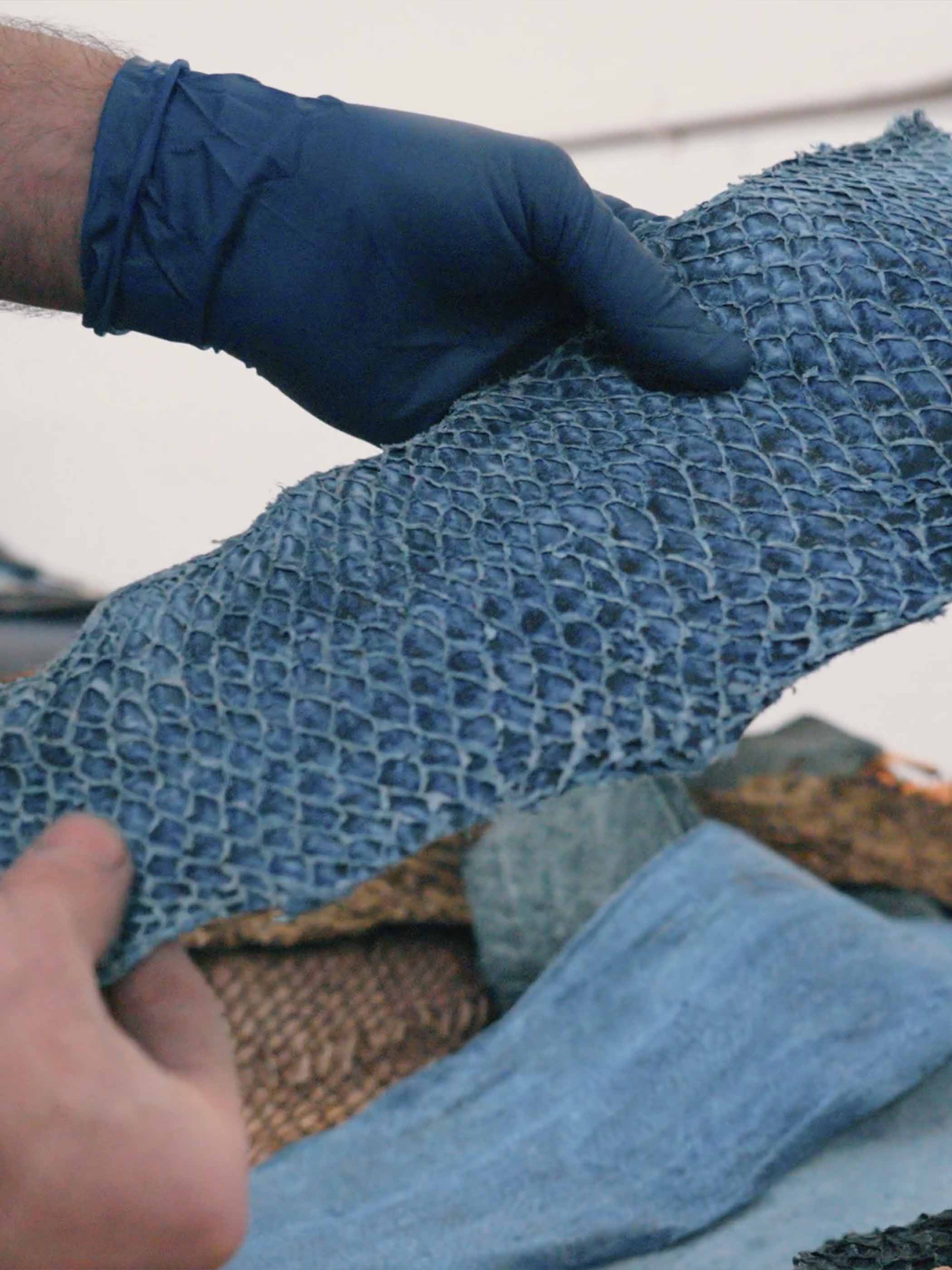 After months of research, testing and trial samples, we partnered with eco‑friendly leather manufacturer Aquaborne to use their hybrid tanning method, which saves 80% of the water and energy used in the traditional tanning process.