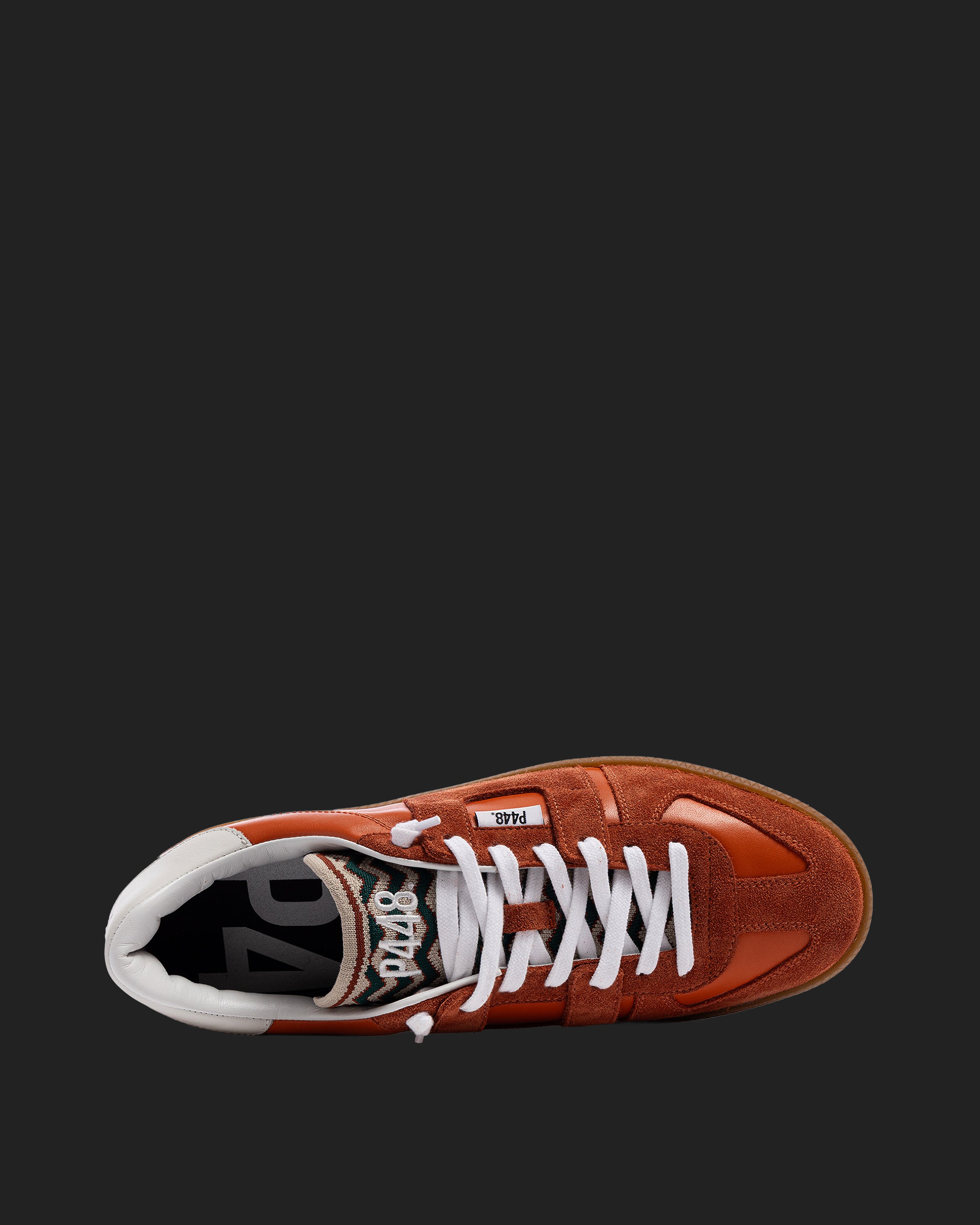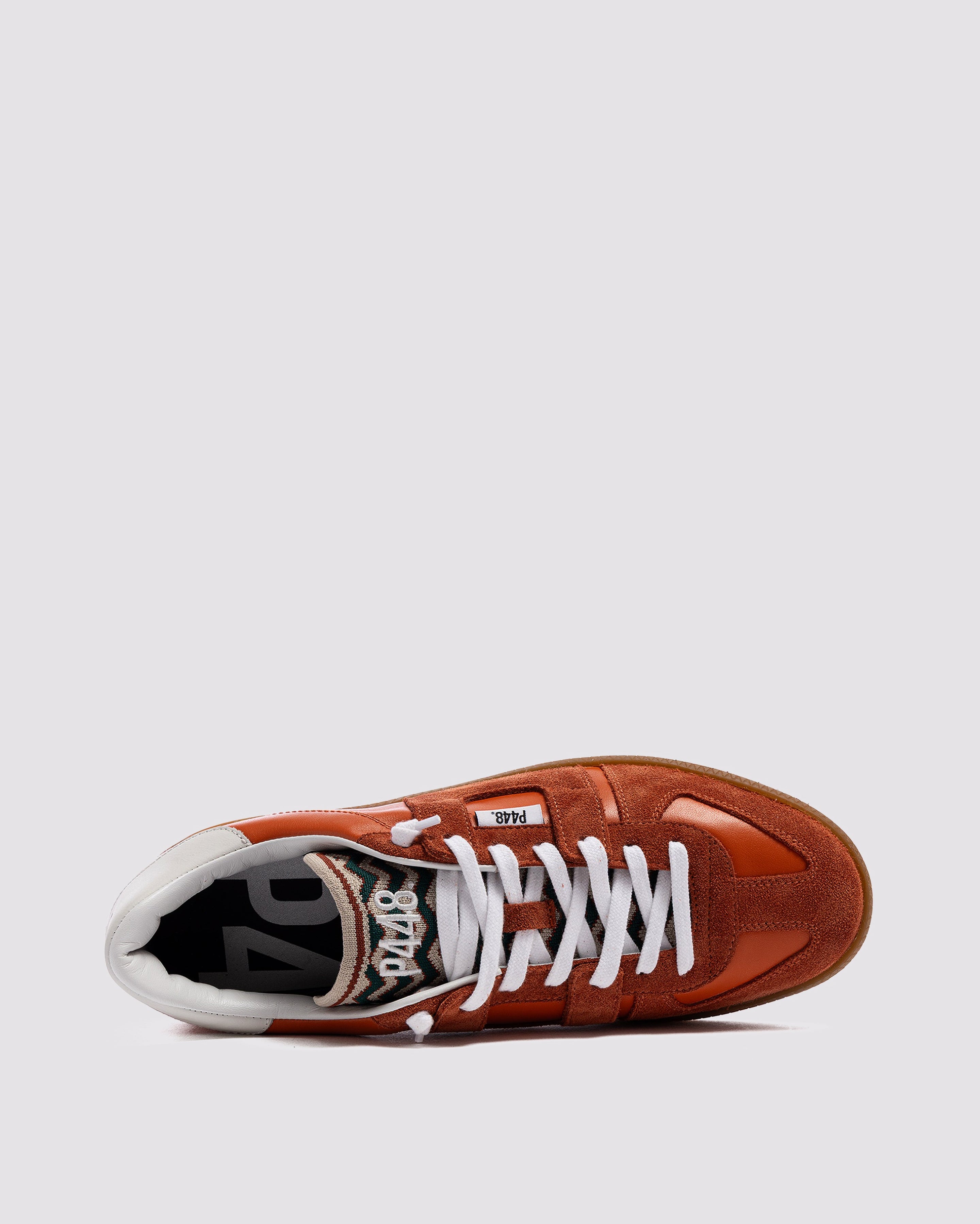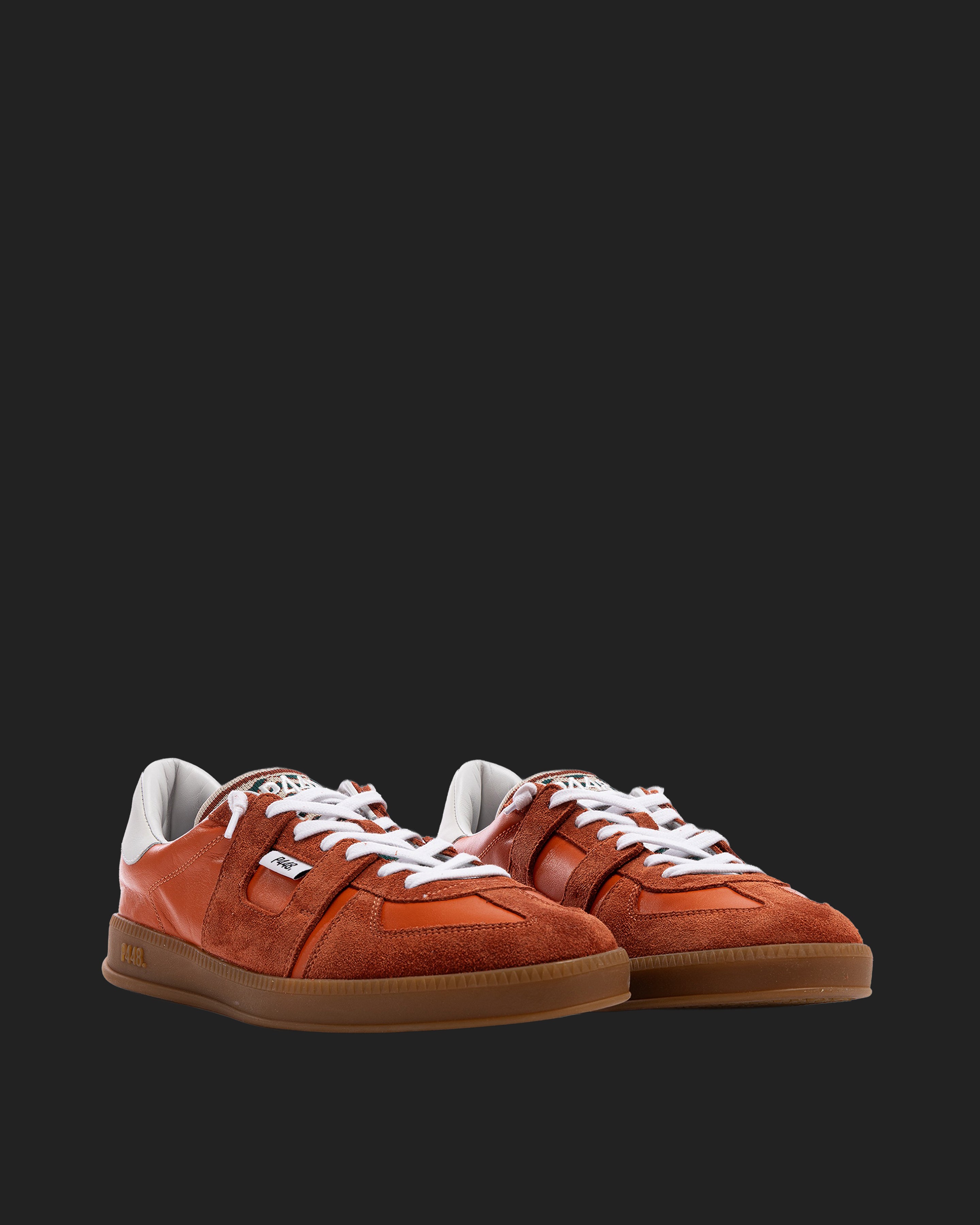 The Monza Waves features all-over red leather and suede with a contrasting white leather heel tab and knitted tongue. The white cotton laces and our signature P448 gum sole finish off the look. Swap in the extra pair of copper cotton laces for a monochromatic moment.