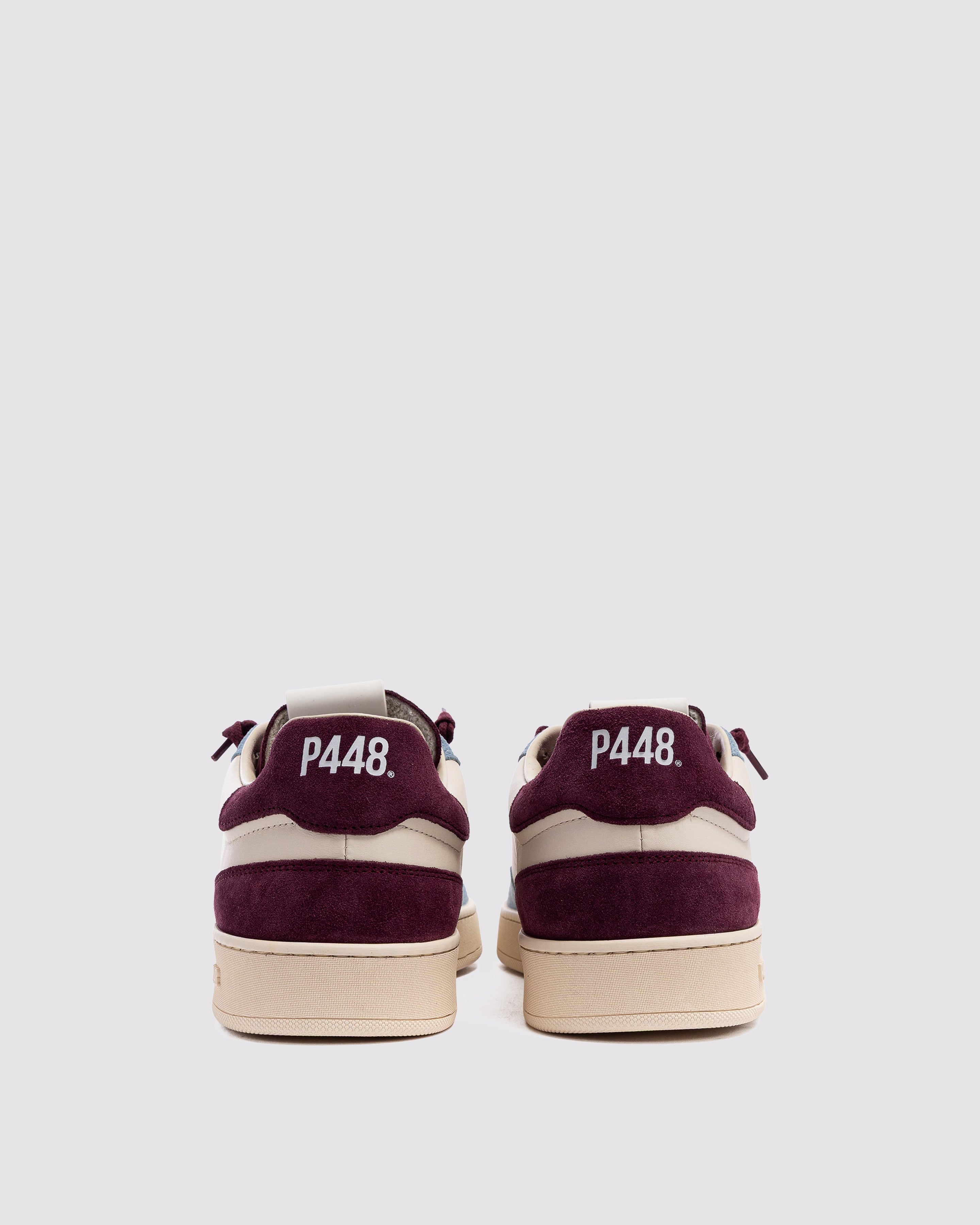 The Vert Sand Sky features a white leather upper with a perforated P448 logo, accented by a burgundy suede tongue,...