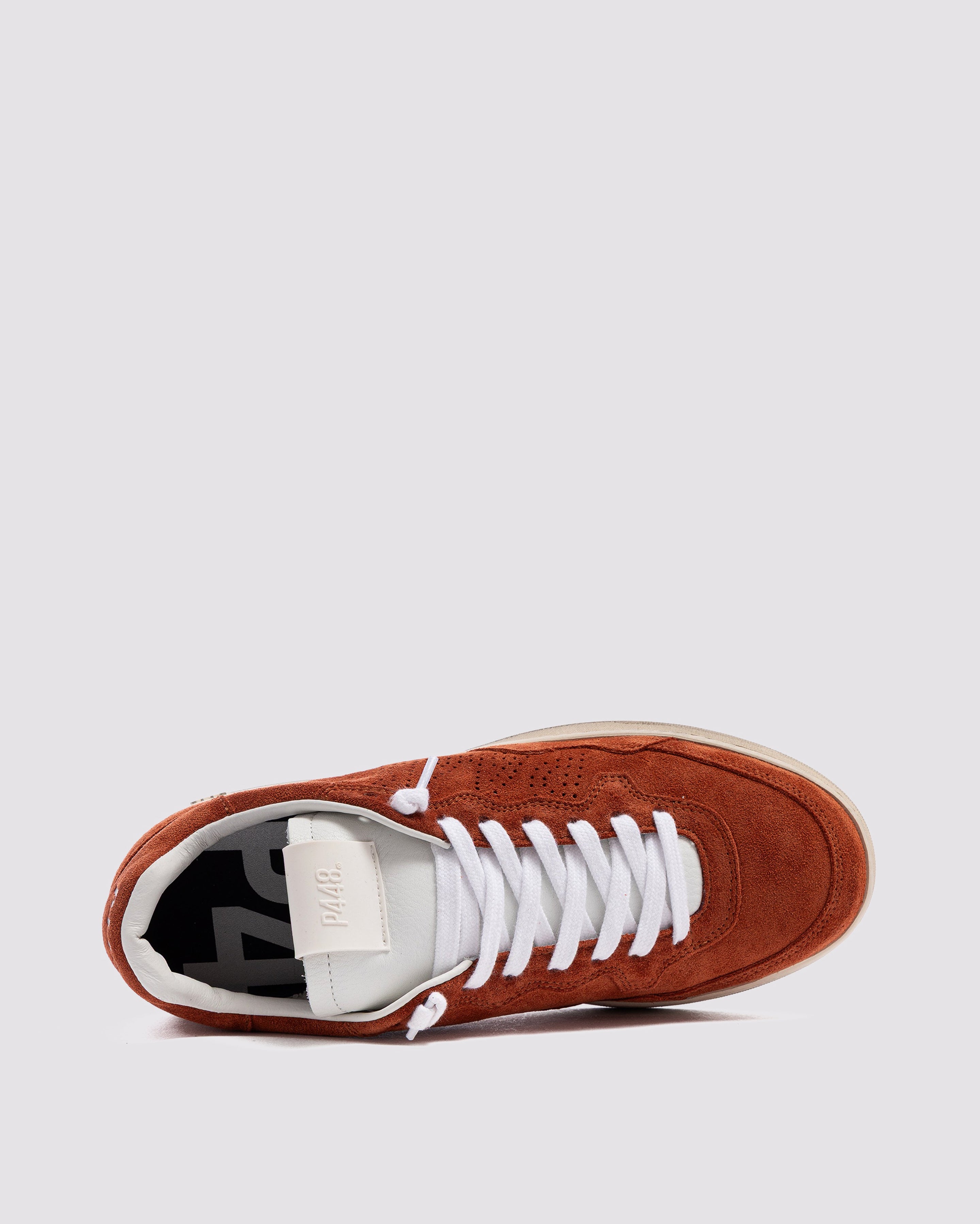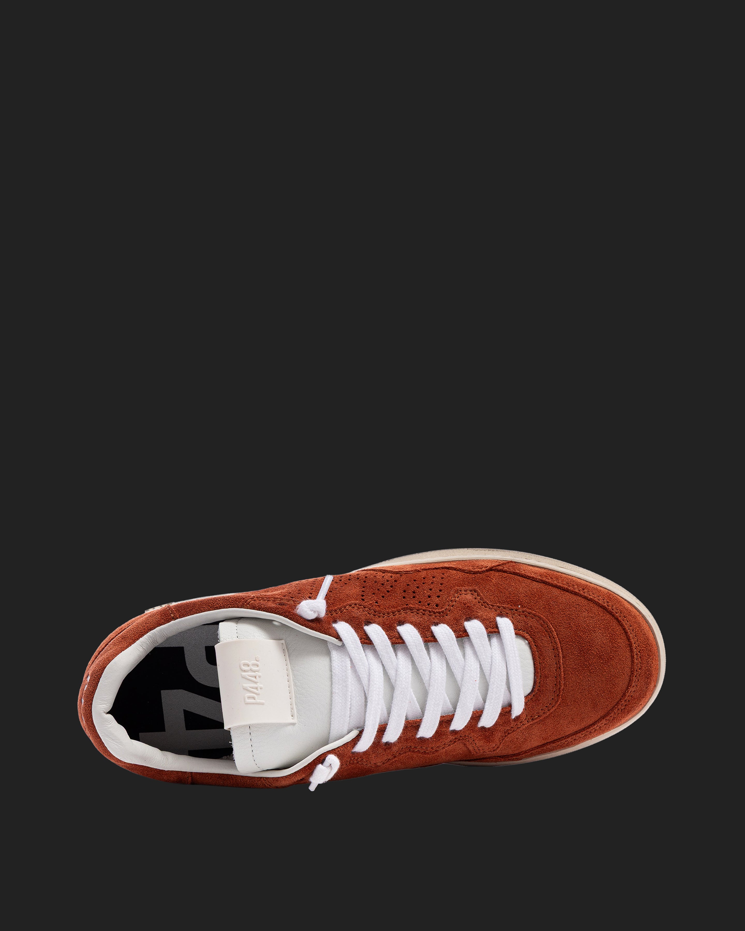 The Vert Mono Orange features all-over brick red suede with a white leather tongue. Finished with white cotton laces, or swap in the extra pair of copper cotton laces for a monochromatic look. Our signature P448 rubber sole is crafted with skaters in mind, featuring a cream herringbone tread and pivot point for extra grip and ultimate comfort.